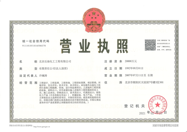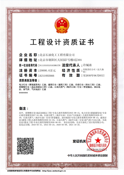 工程咨詢單位甲級資信證書(石化、化工、醫(yī)藥)