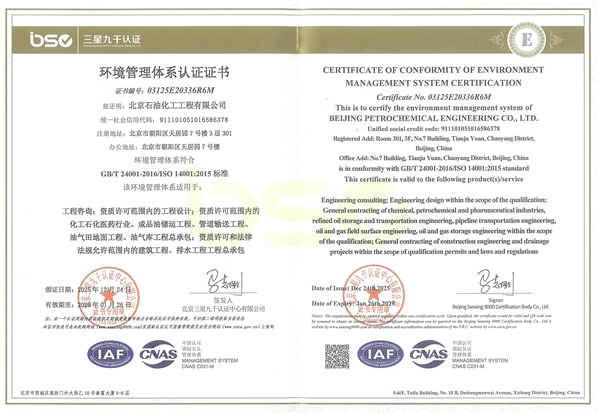 環(huán)境管理體系認證證書