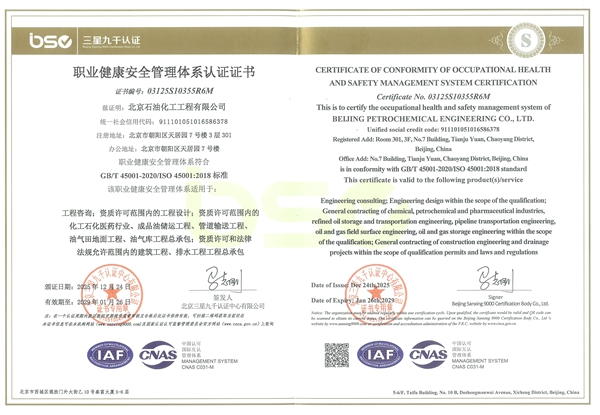 職業(yè)健康安全管理體系認證證書
