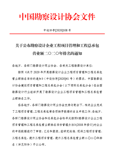 公司躋身勘察設(shè)計行業(yè)項(xiàng)目管理和工程總承包百名行列程