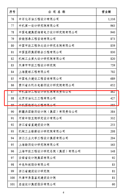 近日,中國勘察設(shè)計協(xié)會發(fā)布了《關(guān)于公布勘察設(shè)計企業(yè)工程項(xiàng)目管理和工程總承包營業(yè)額二0二0年排名的通知》,北京石油化工工程有限公司獲工程總承包營業(yè)額排名第52位、工程項(xiàng)目管理排名第88位。