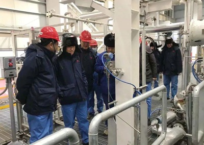 許緘濤首先來到甲醇聯(lián)合裝置施工現(xiàn)場(chǎng)進(jìn)行了視察。先后到甲醇合成精餾、氣化、灰水處理、變換、低溫甲醇洗等單元進(jìn)行了查看,聽取了相關(guān)負(fù)責(zé)人項(xiàng)目情況介紹,并對(duì)項(xiàng)目試車運(yùn)行、技術(shù)保障等情況進(jìn)行了詳細(xì)詢問。許緘濤對(duì)項(xiàng)目組工作表示肯定,并強(qiáng)調(diào)要全力做好現(xiàn)場(chǎng)防凍防凝工作,針對(duì)冬季帶來的不利因素,要進(jìn)一步強(qiáng)化現(xiàn)場(chǎng)管理,嚴(yán)格執(zhí)行施工程序和標(biāo)準(zhǔn),細(xì)化工作方案,在確保安全質(zhì)量受控的前提下,為業(yè)主投料開車做好保駕護(hù)航工作。