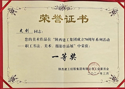 工會邢煜被評選為2020年度“集團優(yōu)秀工會工作者”稱號,土建室史劍參選的美術作品榮獲集團成立70周年“職工書法、美術、攝影作品展”一等獎。