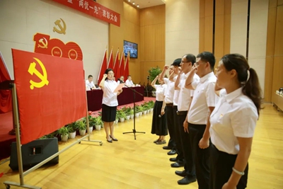 在田偉同志的帶領下,預備黨員高舉右手,緊握拳頭,莊嚴宣誓,立下自己對黨忠誠的誓言,表達了為黨的事業奮斗終身的決心和愿望。