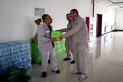 由公司EPC總承包的榆神能化50萬噸/年煤基乙醇項目,自開工以來,項目建設者堅守一線,組織施工建設、排查安全隱患、提供技術支持、嚴控質量關。目前,正值項目安裝施工大干時期,項目全員時刻緊盯現場,即使酷熱難耐,也要堅守崗位。考慮到項目現場艱苦環境,近日,公司工會在項目現場開展了"送清涼"活動。