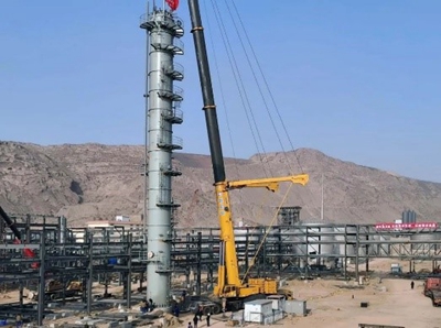 近日,由北京石油化工工程有限公司EPC總承包的內(nèi)蒙東景BDO項目丁二醇主裝置低沸塔緩緩起吊,經(jīng)過2個小時的緊張施工,穩(wěn)穩(wěn)地吊裝到指定位置上。