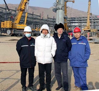 內(nèi)蒙古東源科技有限公司董事長俞海明、東景生物環(huán)保科技有限公司總經(jīng)理馬民峰,北油工程公司副總經(jīng)理劉戈等相關(guān)領(lǐng)導(dǎo)共同見證了該項目最高設(shè)備的吊裝順利完成。