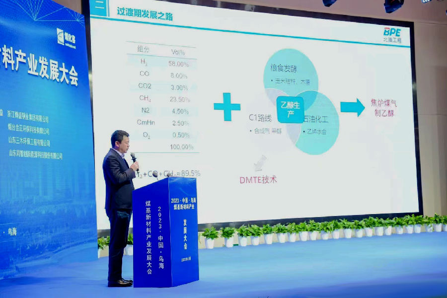 北油工程副總經(jīng)理劉戈作為嘉賓以“從傳統(tǒng)焦化邁向新能源”為主題展開演講。目前煤化工產(chǎn)業(yè)的整體發(fā)展主要集中在甲醇、乙二醇等傳統(tǒng)領(lǐng)域,有發(fā)展煤基乙醇的潛在優(yōu)勢。劉戈提出,煤化工高質(zhì)量發(fā)展之路,要以焦爐尾氣制乙醇為媒介生產(chǎn)乙烯、醋酸乙烯、EVA、走向光伏領(lǐng)域,環(huán)氧乙烷、碳酸酯電池電解液,進入電池新能源行業(yè)。
