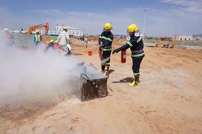 演練開始前,項目部對現(xiàn)場人員進行了專題培訓,著重講解了在施工現(xiàn)場的火災風險點和日常防范要求,火場緊急逃生、自救互救等相關(guān)內(nèi)容,并現(xiàn)場演示了滅火器等消防器材的使用方法,確保全體參演人員掌握基本滅火逃生要領(lǐng)。同時,對滅火防護服穿戴方法進行演示,帶領(lǐng)施工工人熟悉消防應急救援流程。