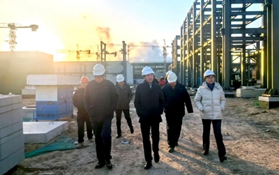 許緘濤一行對項目東西兩區的關鍵建設區域進行了實地調研。詳細詢問了員工返崗情況,仔細檢查了物資儲備的充足性和安全措施的有效性,并對烯烴新材項目春節期間加班加點所取得的初步成果表示肯定。