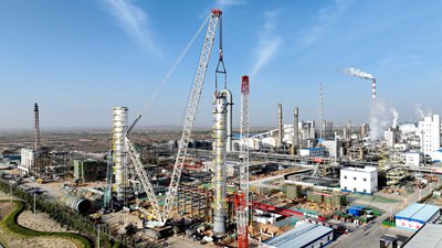 4月22日,由北京石油化工工程有限公司EPC總承包的陜西延長石油榆林凱越煤化有限責任公司50萬噸/年甲醇制乙醇項目首臺塔器設備——脫脂塔順利完成吊裝作業并精準就位。