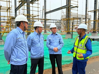 在項目現場,許緘濤查看了各裝置區,詳細詢問各專業施工進度安排、關鍵設備安裝調試情況。對項目施工中遇到的技術難點、質量管控重點、安全風險點等關鍵環節,與現場管理人員、技術骨干進行了深入交流探討。