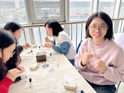 手工體驗區則呈現出另一番溫馨愜意的景象。女職工們圍坐在一起,興致盎然地投入創作,從材料挑選、造型設計到細節雕琢,每一個步驟都飽含巧思、一絲不茍。指尖翻飛間,一件件獨具匠心、精致美觀的手工作品悄然成型,大家在動手實踐中舒緩了工作壓力,也在互動交流中進一步增進了彼此的情誼,傳遞了巾幗溫情。