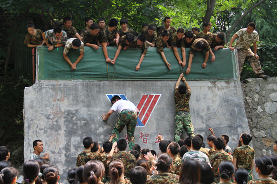 團隊項目中,103名隊員僅用了29分鐘就成功翻越了4.3米高的畢業(yè)墻,團隊的勝利使畢業(yè)生們體驗到集體的力量,體會到甘于奉獻的偉大,樹立了相互支持、精誠團結(jié)的團隊精神和合作意識。