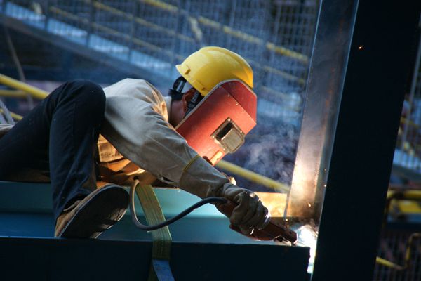熱電動力裝置現(xiàn)場,工人正在焊接4#鍋爐框架