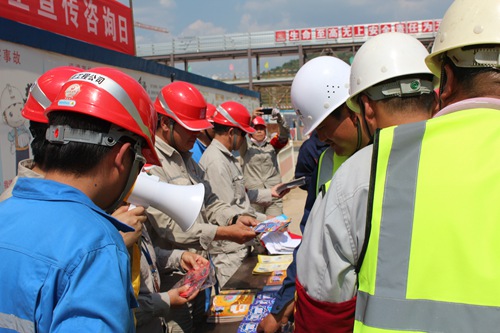 活動以懸掛橫幅、設立咨詢臺、擺放宣傳展板、發放宣傳資料等各種靈活多樣的形式開展。活動現場,項目部工作人員積極向廣大參建人員傳播安全生產理念,普及安全生產相關政策法律法規,安全科普常識、應急處置和自救互救方法等,著力提高廣大參建人員的安全意識、防災避險和應急處置能力。同時,項目HSE領導重點對職業安全健康、現場安全管理知識以及“安全生產年”等方面進行了講解。