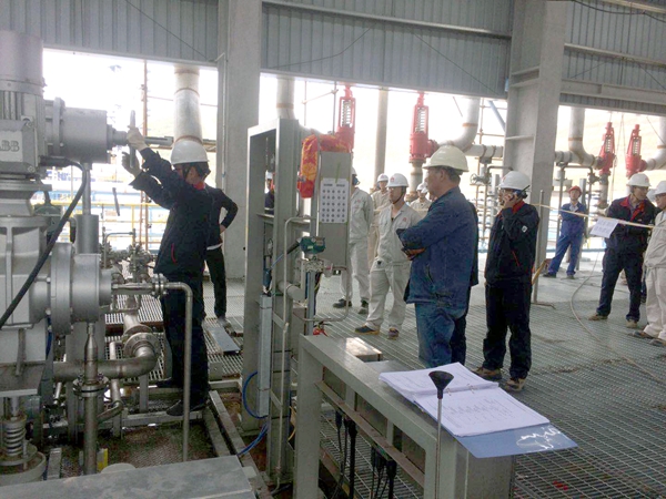 為順利完成兩臺壓縮機負荷試車,項目組抽調技術骨干,配合業主對界區介質(中壓蒸汽、氮氣、儀表風、循環水等)運行參數、提前啟動汽輪機暖機、防喘振系統調試及模擬測試、一二三級系統管支架、儀表運行及參數等環節逐一進行了核查。在完成機組、系統、安全等相應手續簽字后,下午1635分,丙烯制冷壓縮機組開始負荷試車,經過3個小時的平穩運行后,中控顯示系統溫度、壓力、機組振動值均在正常運行范圍內。隨后,試車團隊又開始乙烯制冷壓縮機機組的負荷試車。晚上2210分,該設備運行平穩,各項參數運行數據正常,試車一次成功。至此,ACO裝置同日完成了兩臺壓縮機試車任務。